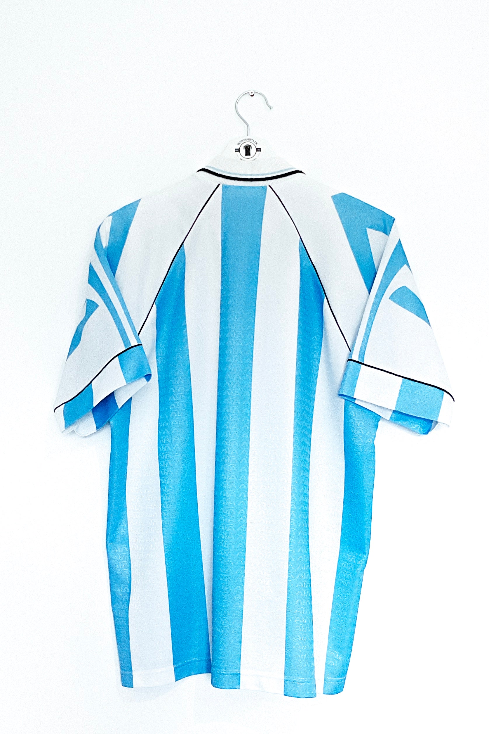 Argentina 1997 Hjemmebane trøje er en ægte skat for fodboldfans verden over. Denne trøje hylder dengang trøjerne kunne noget helt andet. Den stolte argentinske fodboldforbunds emblem pryder brystet, og de velkendte himmelblå og hvide farver symboliserer landets stolte fodboldarv.