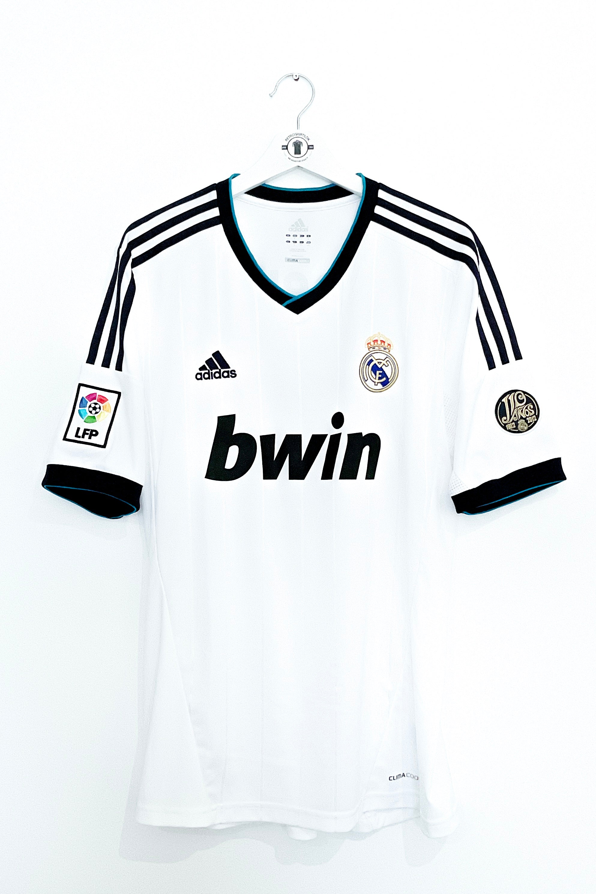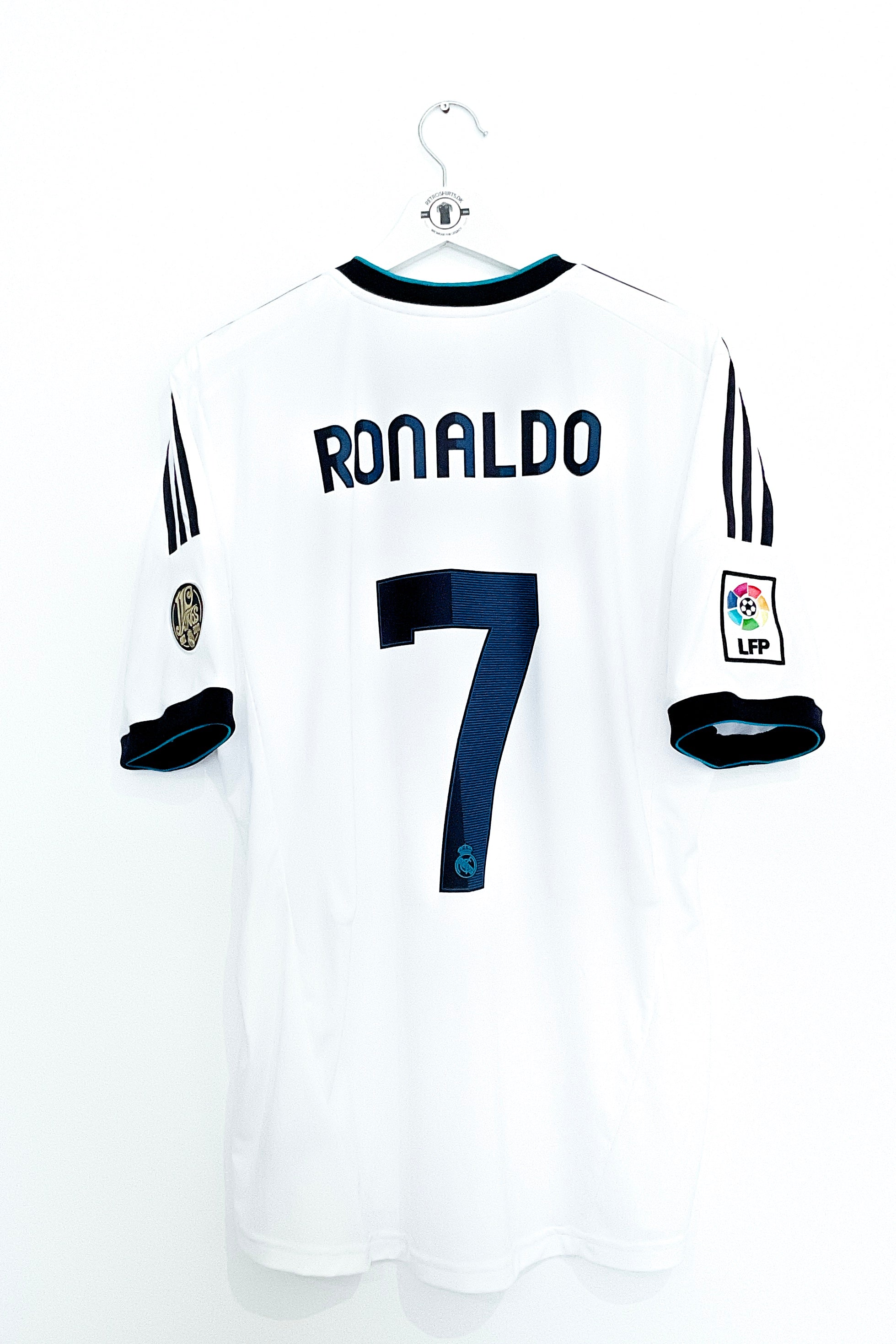 Oplev den legendariske Real Madrid 2012/2013 hjemmebanetrøje med det ikoniske nummer 7 på ryggen, der tilhører ingen ringere end Cristiano Ronaldo. Denne trøje er en ægte hyldest til en af fodboldverdens mest elskede og talentfulde spillere.