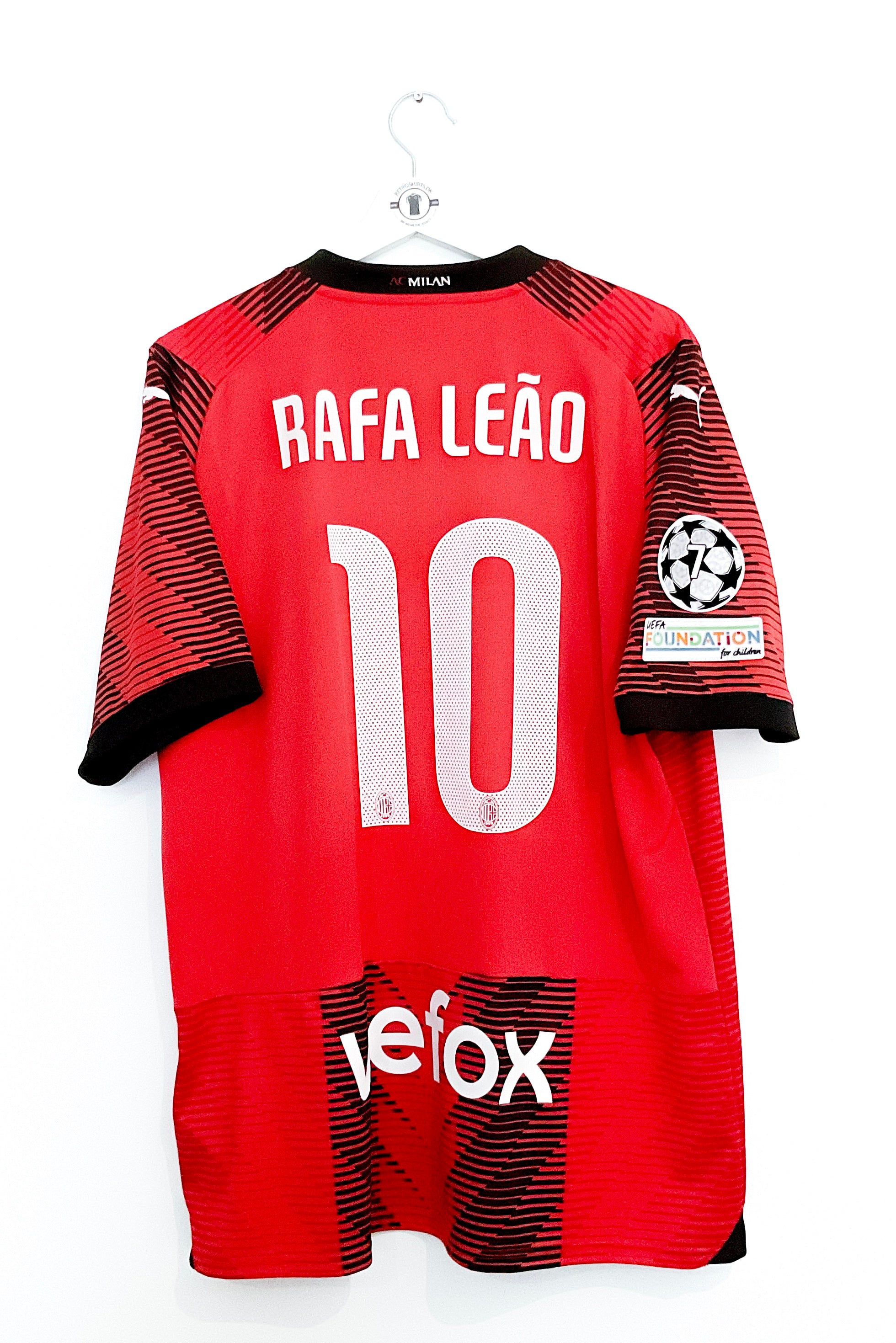 Træd ind i AC Milans heroiske kapitel fra 2023/2024 med den hjemmebanetrøje, der bærer #Rafa Leao 10. Hyld Rafael Leão med denne flotte trøje, der stolt bærer hans navn og nummer. Trøjen fletter klubbens stolte traditioner sammen med moderne design og komfort. Inspireret af Leãos heroiske præstationer på banen hylder trøjen hans utrolige bidrag til AC Milan.