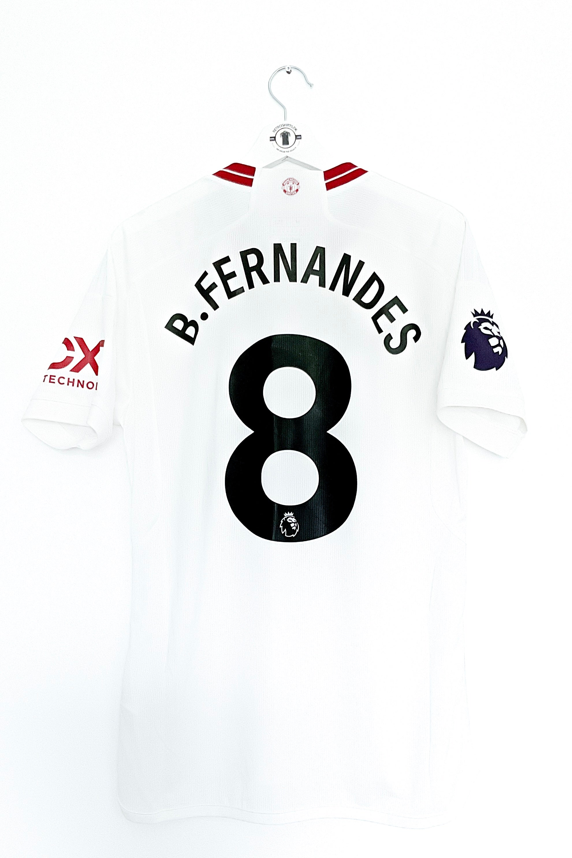 Bruno Fernandes har været en af de mest stabile spillere for de røde djævle. En absolut fantastisk flot udebanetrøje, med klassiks hvid farve logo som får alle de små detaljer til springer i øjene.