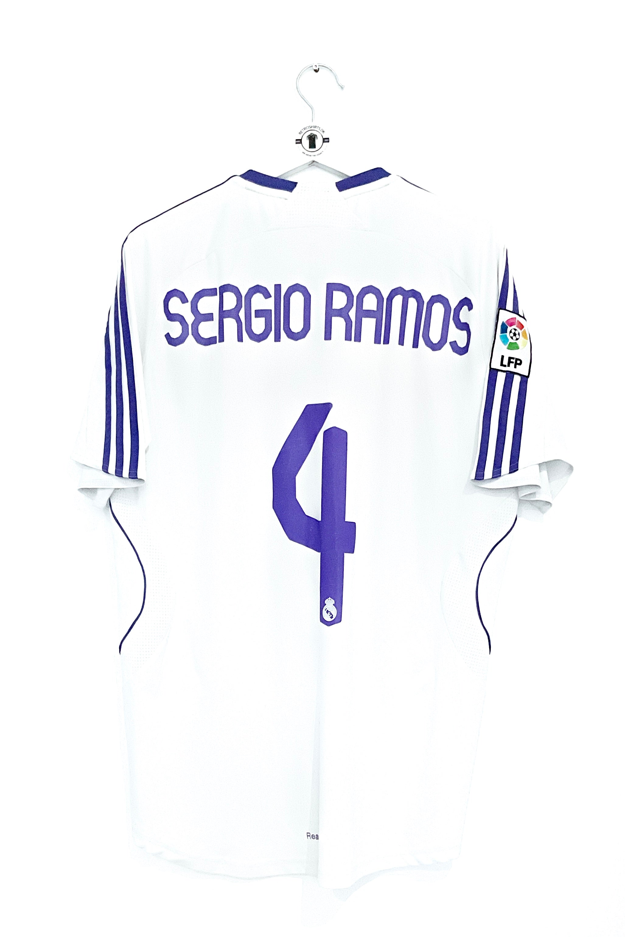 Real Madrid 2007/2008 Hjemmebane-trøjen med Ramos er en tidslomme til en æra, hvor den Spanske forsvarsklippe Ramos dominerede banen. Denne autentiske trøje er den officielle udgave af den, Ramos bar i den mindeværdige sæson. Med den klassiske hvide farve og avanceret komfortmateriale, kan du genopleve klubbens fortid og støtte Real Madrid med stil og hylde en af deres store spillere.